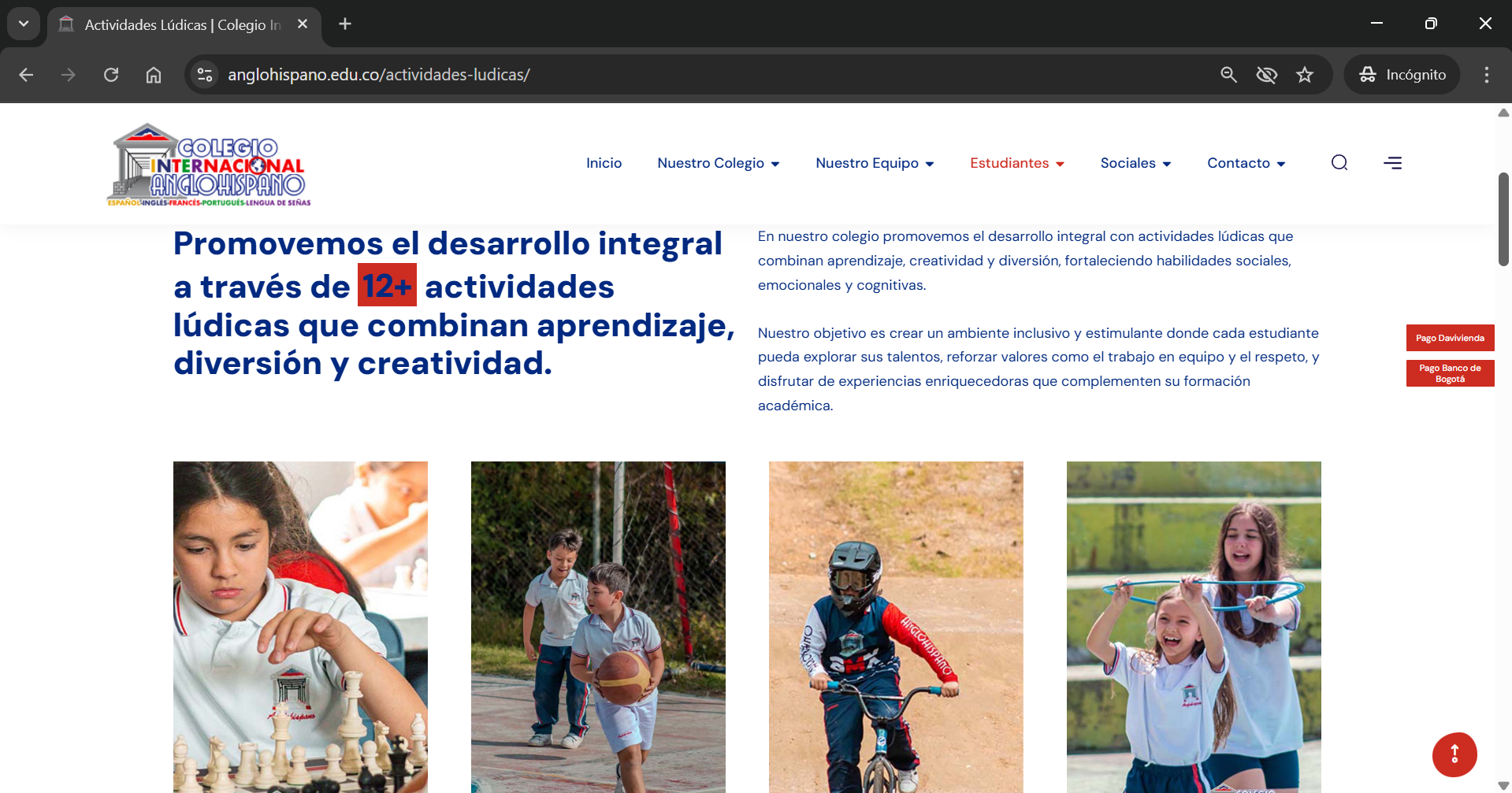Colegio Anglohispano has implemented several virtual strategies such as a Mailing Platform and a Cell Phone Text Messaging Platform with very good results, but it was through the development of its new website www.anglohispano.edu.co that they achieved greater interaction with their community on social networks, improved communication with parents and students, and also linked the online payment button for tuition payments.